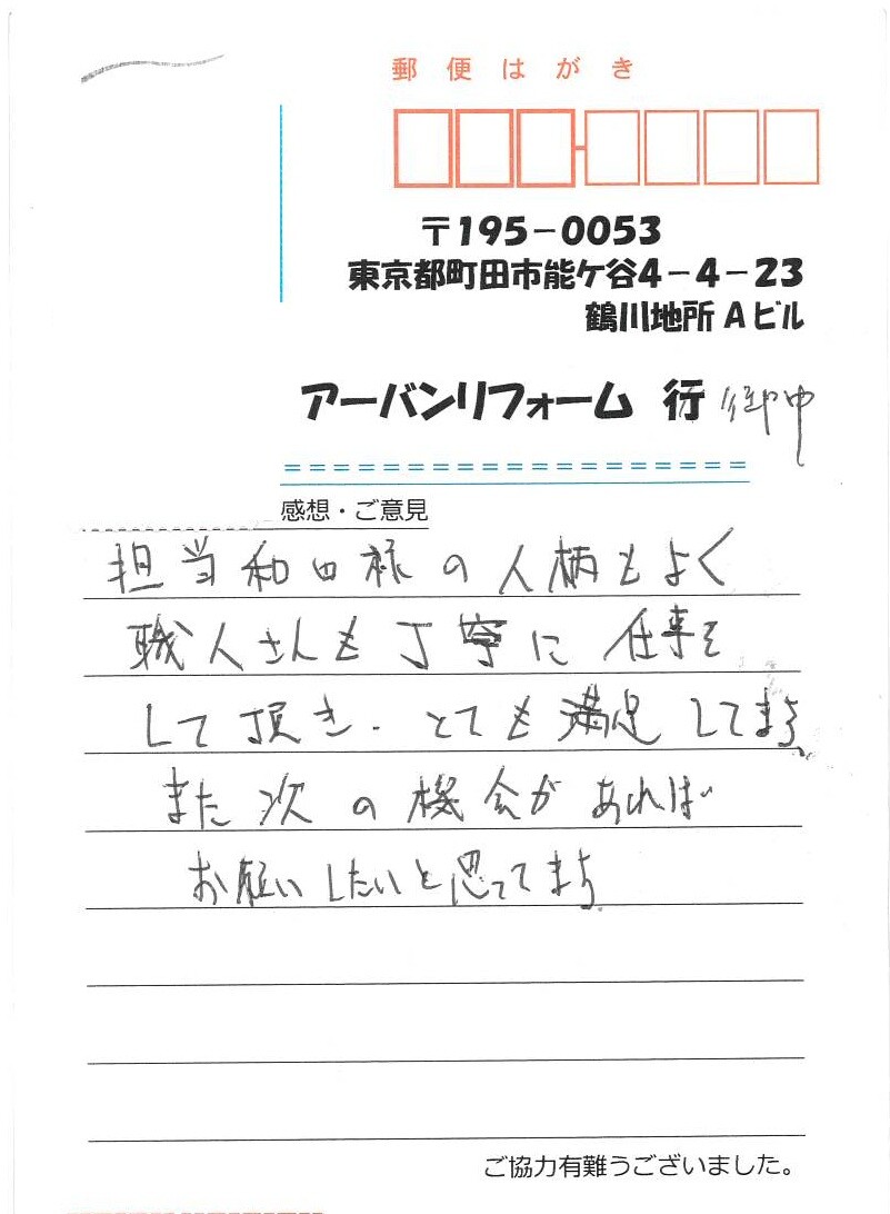とても満足しています|お客様の声|東京都町田市のアーバンリフォーム