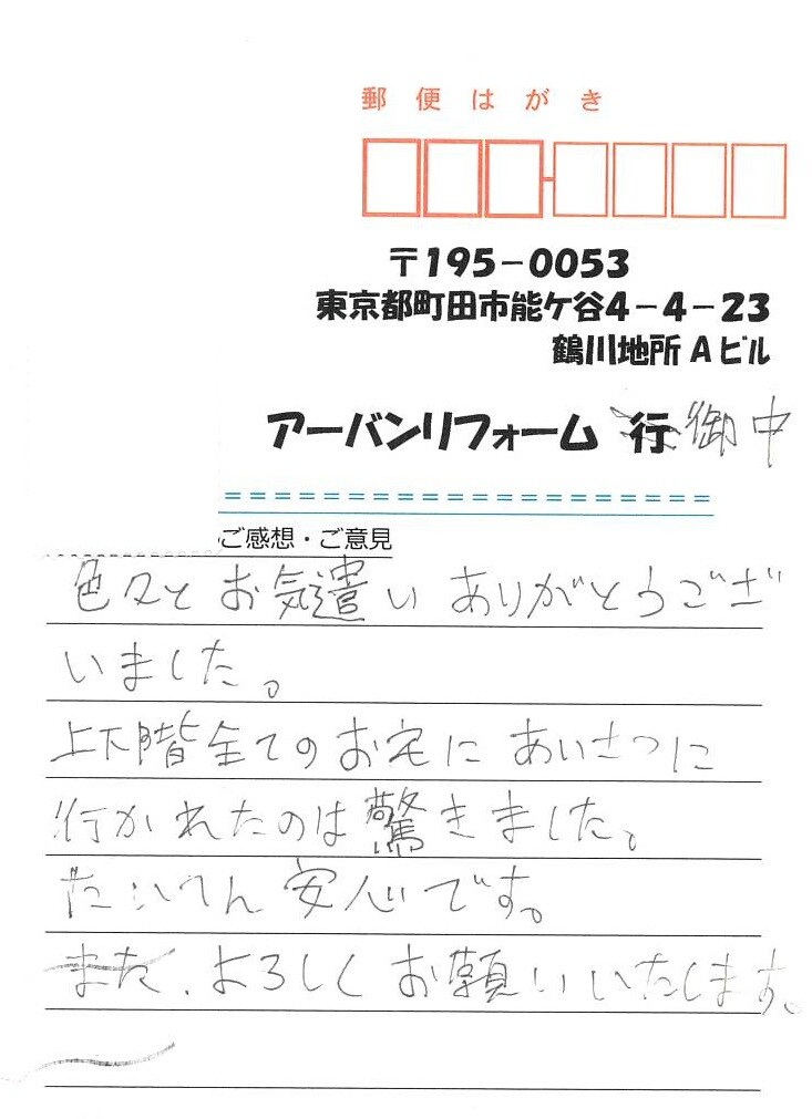 お客様の声|町田市でリフォーム・耐震補強工事ならアーバンリフォーム
