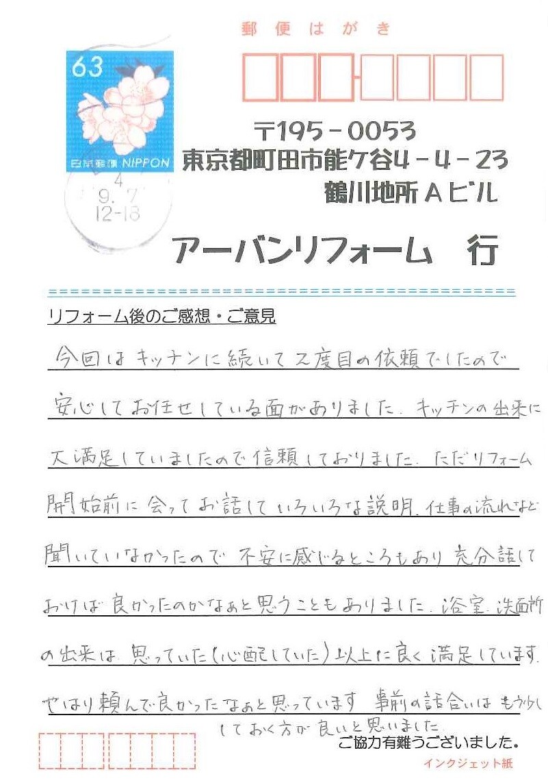 お客様の声|町田市でリフォーム・耐震補強工事ならアーバンリフォーム